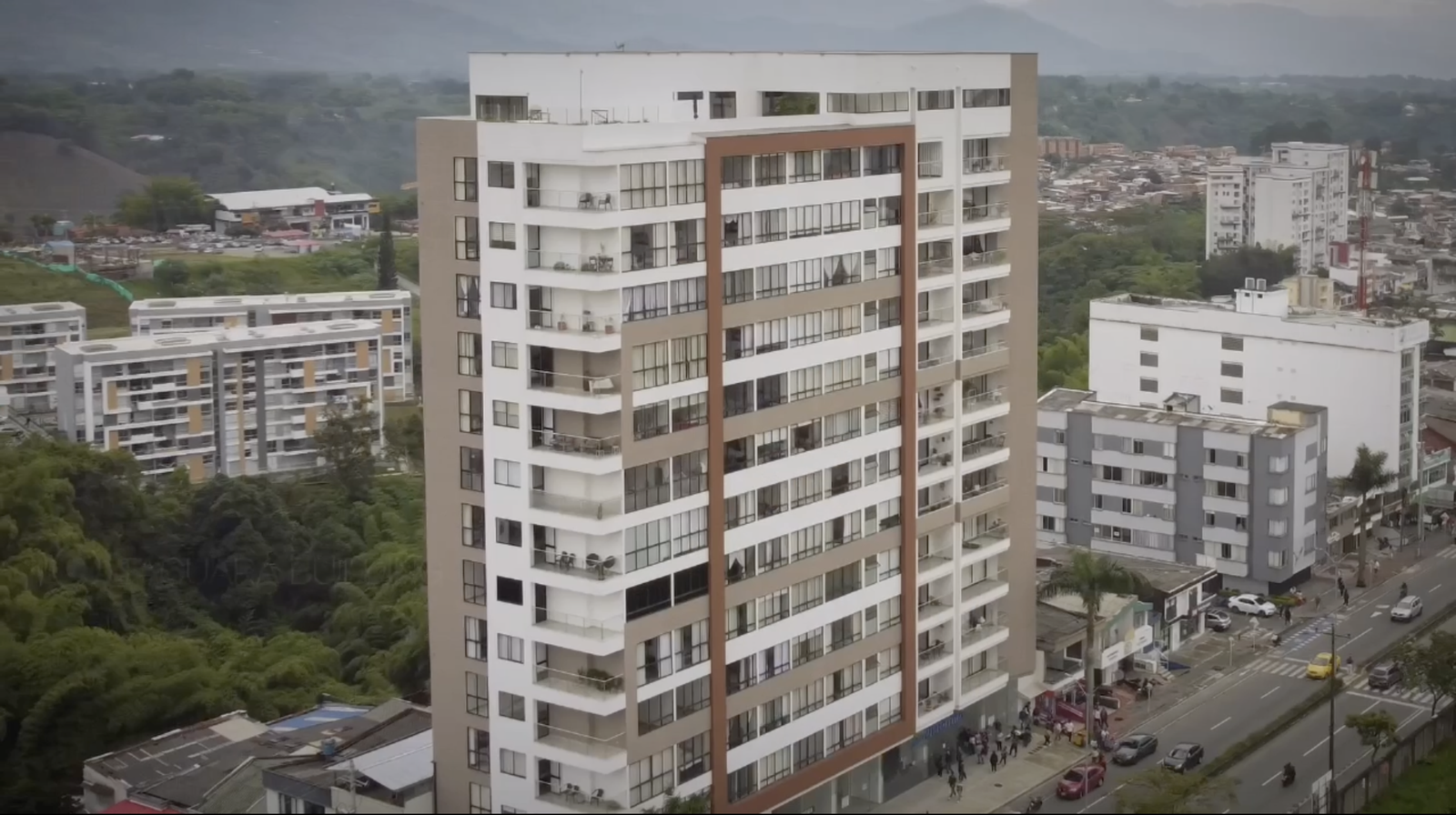 Entendiendo el privilegio de su ubicación (probablemente con vistas al paisaje del Quindío), cada apartamento se ha proyectado hacia el exterior. Los balcones, protegidos con barandas de vidrio transparente, actúan como extensiones del área social, permitiendo una conexión ininterrumpida con el horizonte sin sacrificar la seguridad. La disposición de los ventanales crea un ritmo visual que aligera la masa del edificio, permitiendo que la luz natural bañe los interiores durante todo el día.
