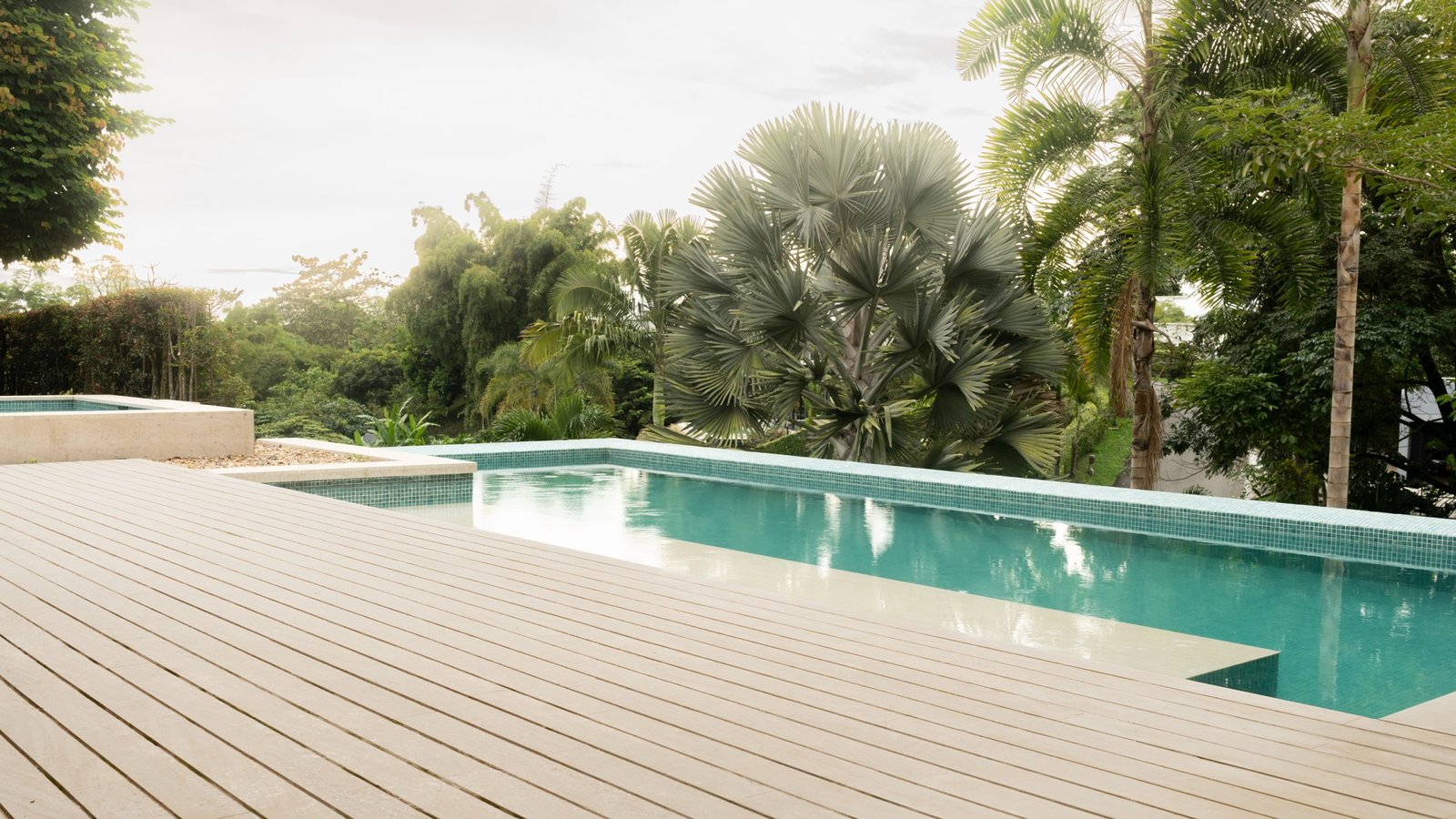 Cada elemento funcional ha sido tratado como una pieza de arte. La escalera flotante, con estructura central de acero negro y peldaños de madera, se eleva sobre un jardín seco interior, convirtiendo el acto de subir y bajar en una experiencia estética. En el exterior, la zona de la piscina y el jacuzzi se integra mediante un deck de madera y pasarelas de piedra sobre el agua, diseñando un recorrido que invita al disfrute pausado del exterior.