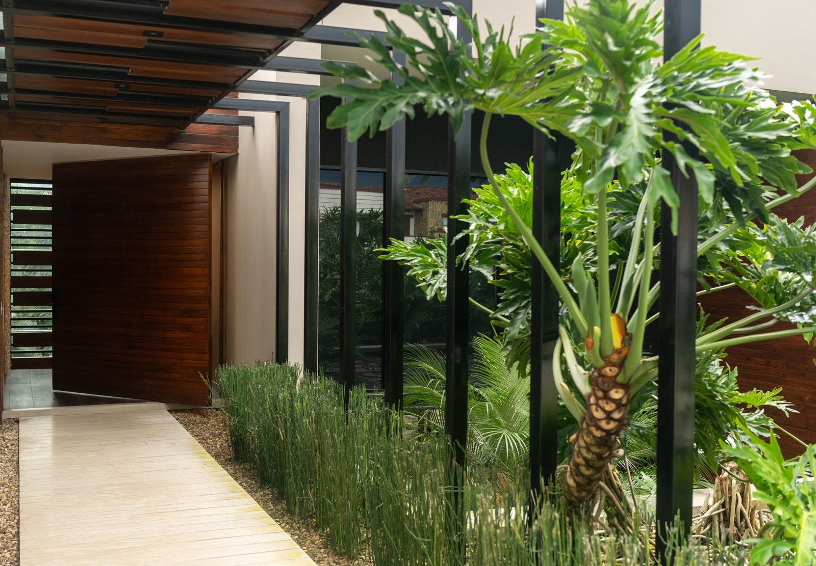 Estructura metálica vista (en escaleras y pérgolas).